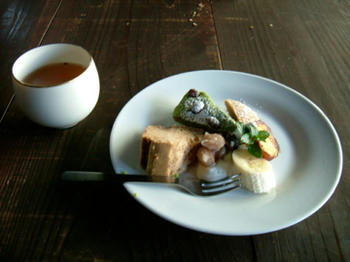 500円で、暖かいお飲みものと、小さなお菓子をご用意しています。